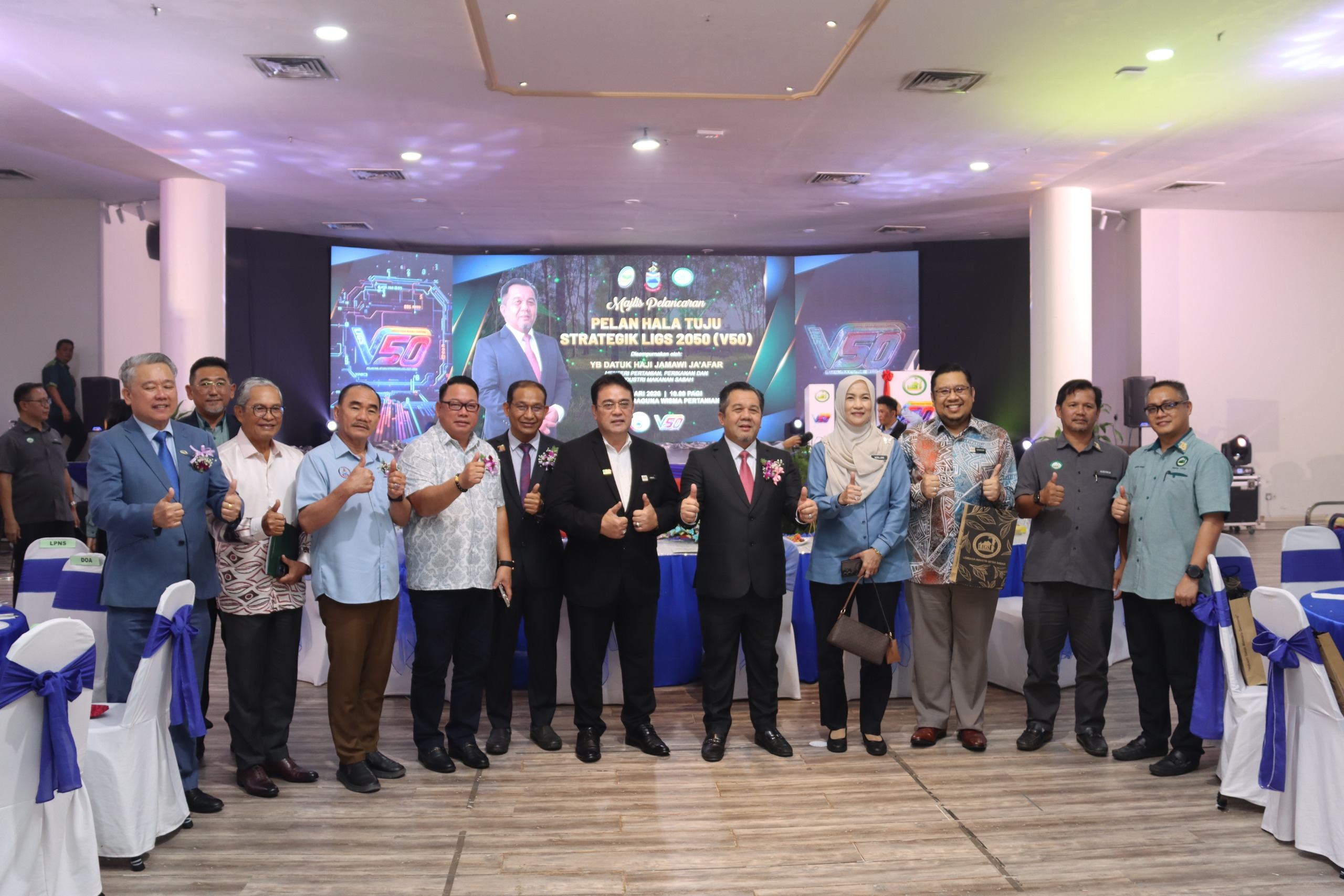 Lembaga Industri Getah Sabah (LIGS) telah menganjurkan Majlis Pelancaran Buku Pelan Strategik Halatuju LIGS 2050 (V50) yang telah disempurnakan oleh Yang Berhormat Datuk Haji Jamawi Ja’afar, Menteri Pertanian, Perikanan dan Industri Makanan Sabah. YB Datuk Haji Jamawi Ja'afar menyatakan bahawa kesediaan LIGS memikul amanah baharu mencerminkan keupayaan lembaga memperkasa institusi serta kepercayaan Kerajaan terhadap tahap profesionalisme dan keberkesanan pelaksanaannya. Beliau turut menegaskan peranan pengaktifan LIGS Solutions dalam memperkukuh aspek komersial, sekali gus meletakkan LIGS sebagai organisasi hibrid yang seimbang antara fungsi pembangunan dan kelestarian komersial. Pelan strategik ini digubal sebagai panduan hala tuju jangka panjang LIGS dalam memperkukuh pembangunan industri getah Negeri Sabah secara mampan, berdaya saing dan berimpak tinggi sehingga tahun 2050. Majlis yang berlangsung di Dewan Serbaguna Wisma Pertanian ini turut dihadiri oleh barisan pengurusan LIGS, ketua-ketua jabatan dan agensi, wakil industri serta jemputan rasmi.